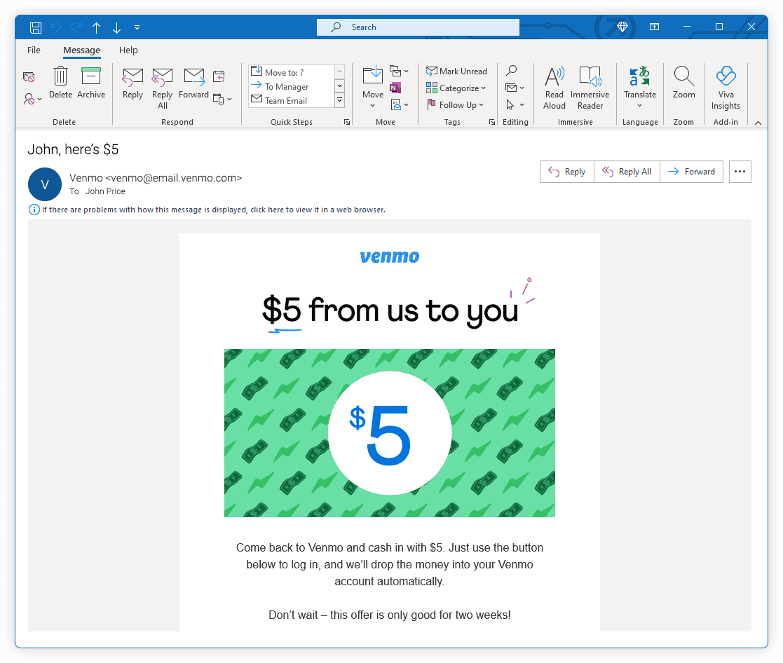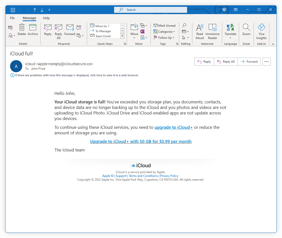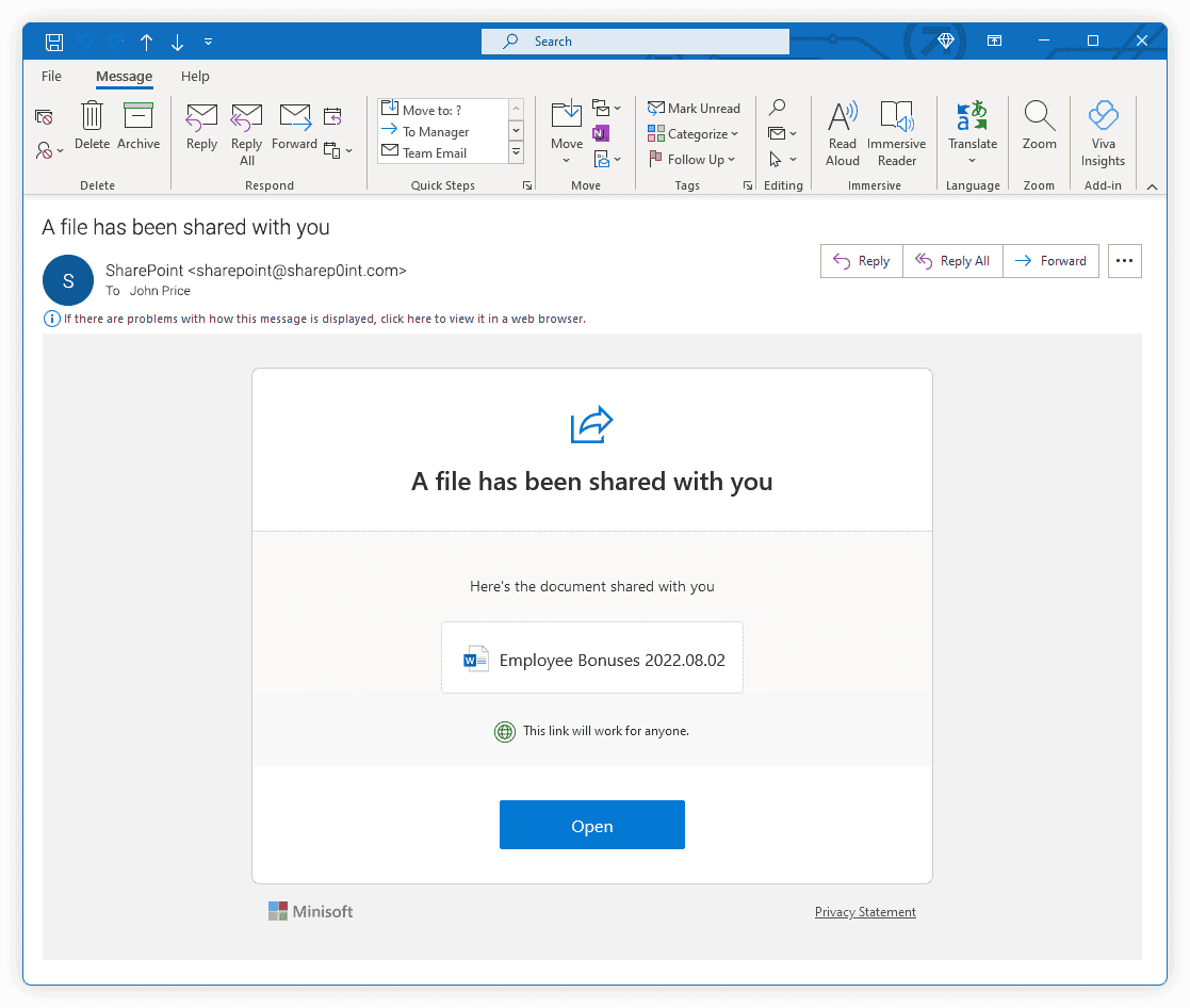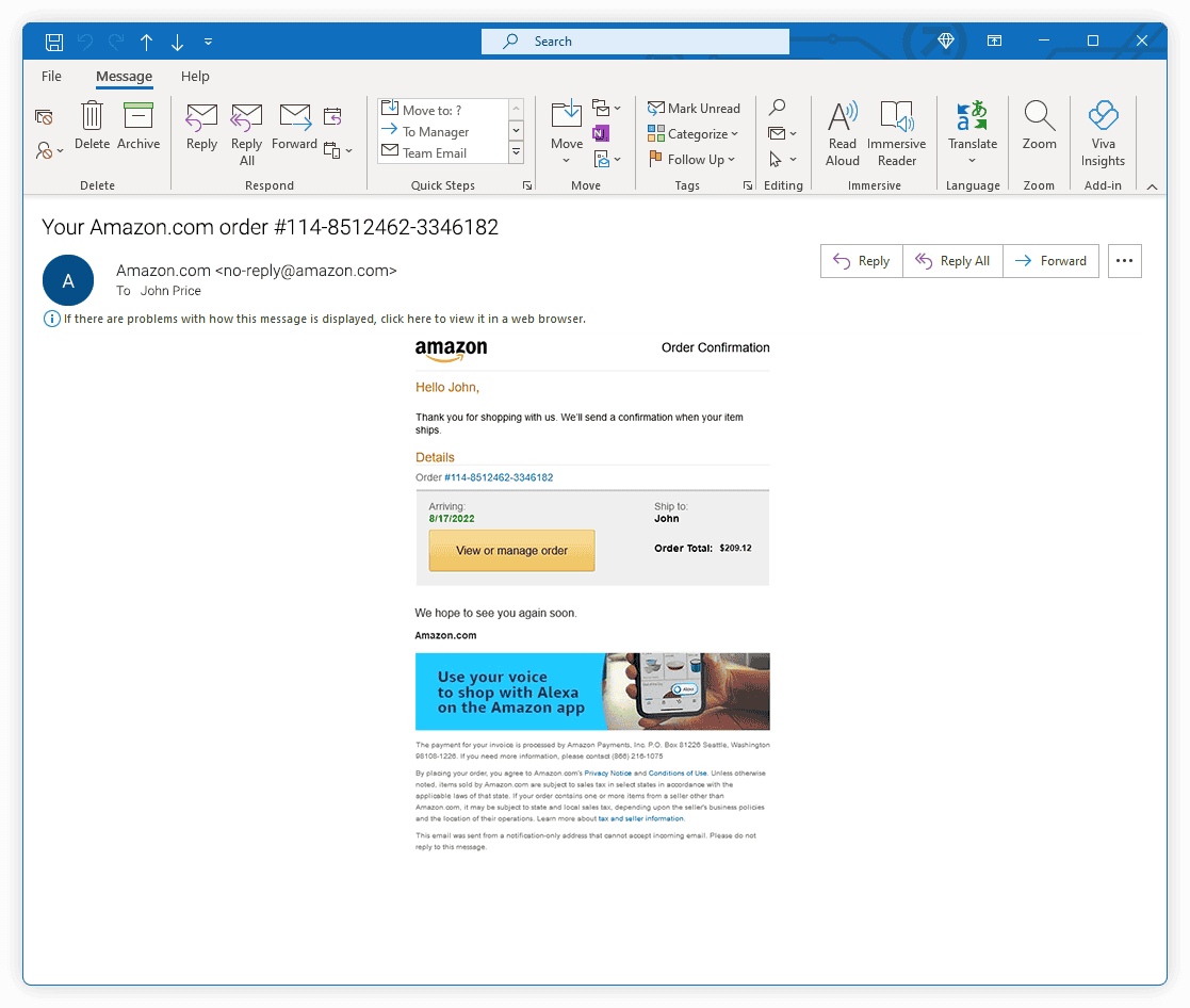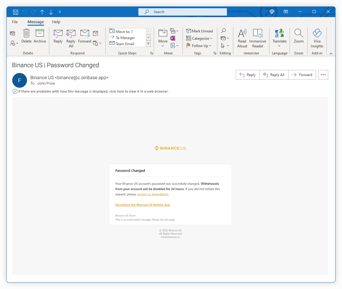 Please select if the following email is legitimate or a phishing attack.